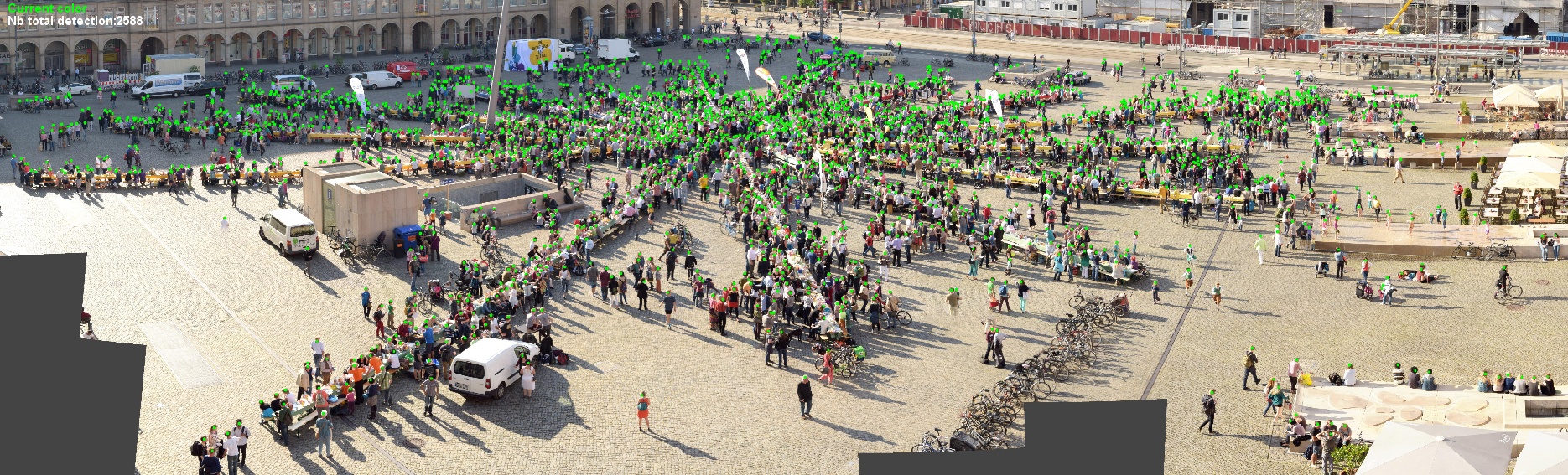 Um die Teilnehmerzahl schätzen zu können wurde ein Foto von erhöhter Position verwendet. Insgesamt wurden auf dem Bild um 18:08 Uhr 2588 Personen gezählt. Vergangene Untersuchungen haben jedoch gezeigt, dass für eine Abschätzung der Zahl der tatsächlich anwesenden Menschen der Crowd-Faktor berücksichtigt werden muss. Also Menschen, die durch andere Personen oder sonstige Hindernisse nicht gesehen werden können. Kinder, von denen zahlreiche anwesend waren, werden aufgrund ihrer Größe besonders leicht verdeckt.