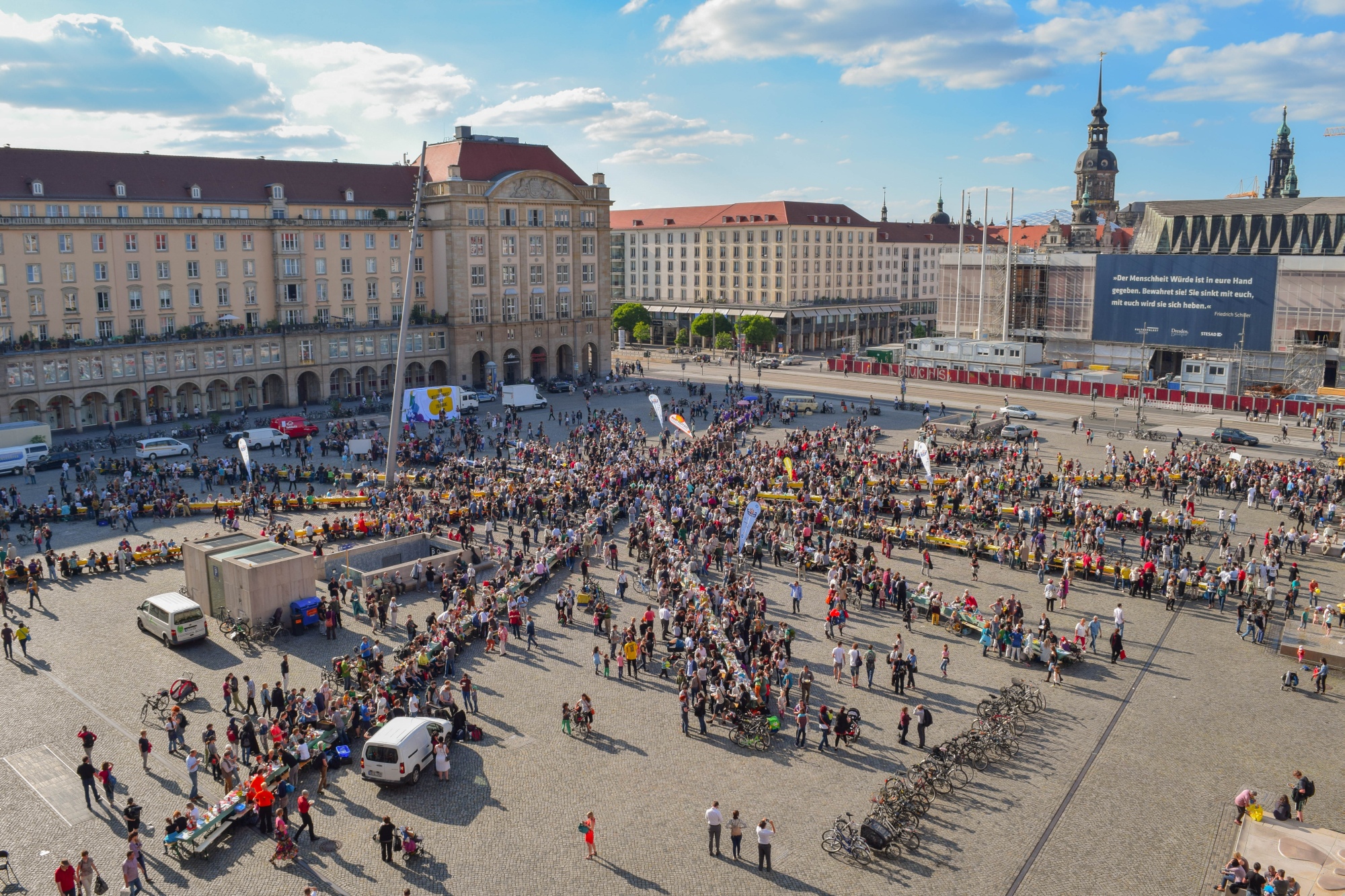 Am 10.06.2015 fand zwischen 17 und 20 Uhr auf dem Altmarkt die Veranstaltung „Dresden is(s)t Bunt“ auf dem Altmarkt statt. Organisiert wurde das Event durch die Gruppen „Dresden – Place to be“, „#WOD – Initiative für weltoffenes Dresden“ sowie „Dresden für alle“. Es wurde eine riesige, sternförmige Tafel aufgebaut, an der die Menschen gemeinsam aßen und ins Gespräch kamen. Vielfältige Unterhaltung wurde von vielen Künstlerinnen und Künstlern geboten. Es haben mit großer Wahrscheinlichkeit mindestens 3000 Menschen teilgenommen.