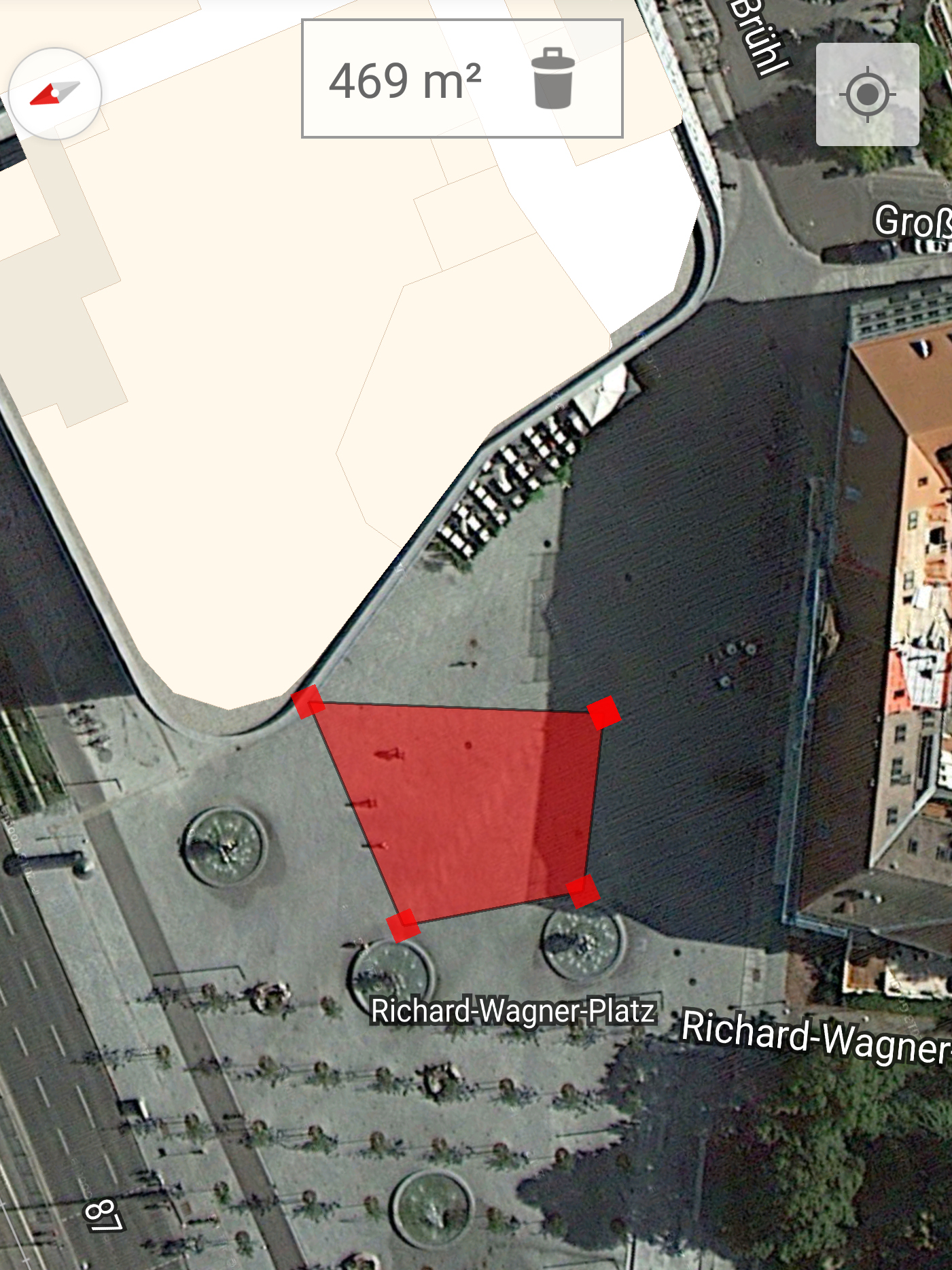 Dort nahmen wir gegen 19:30 folgende Schätzung der von der zentralen Menschenmasse bedeckten Fläche vor.