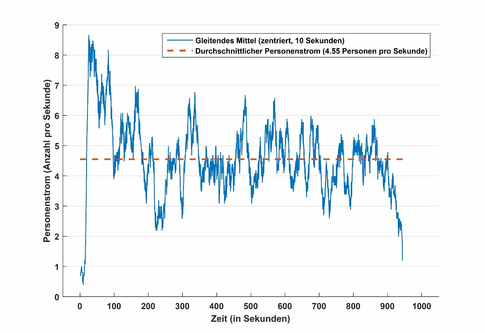 Personenstrom, gleitendes Mittel (zentriert, 10 Sekunden) Bild: Forschungsgruppe Durchgezählt