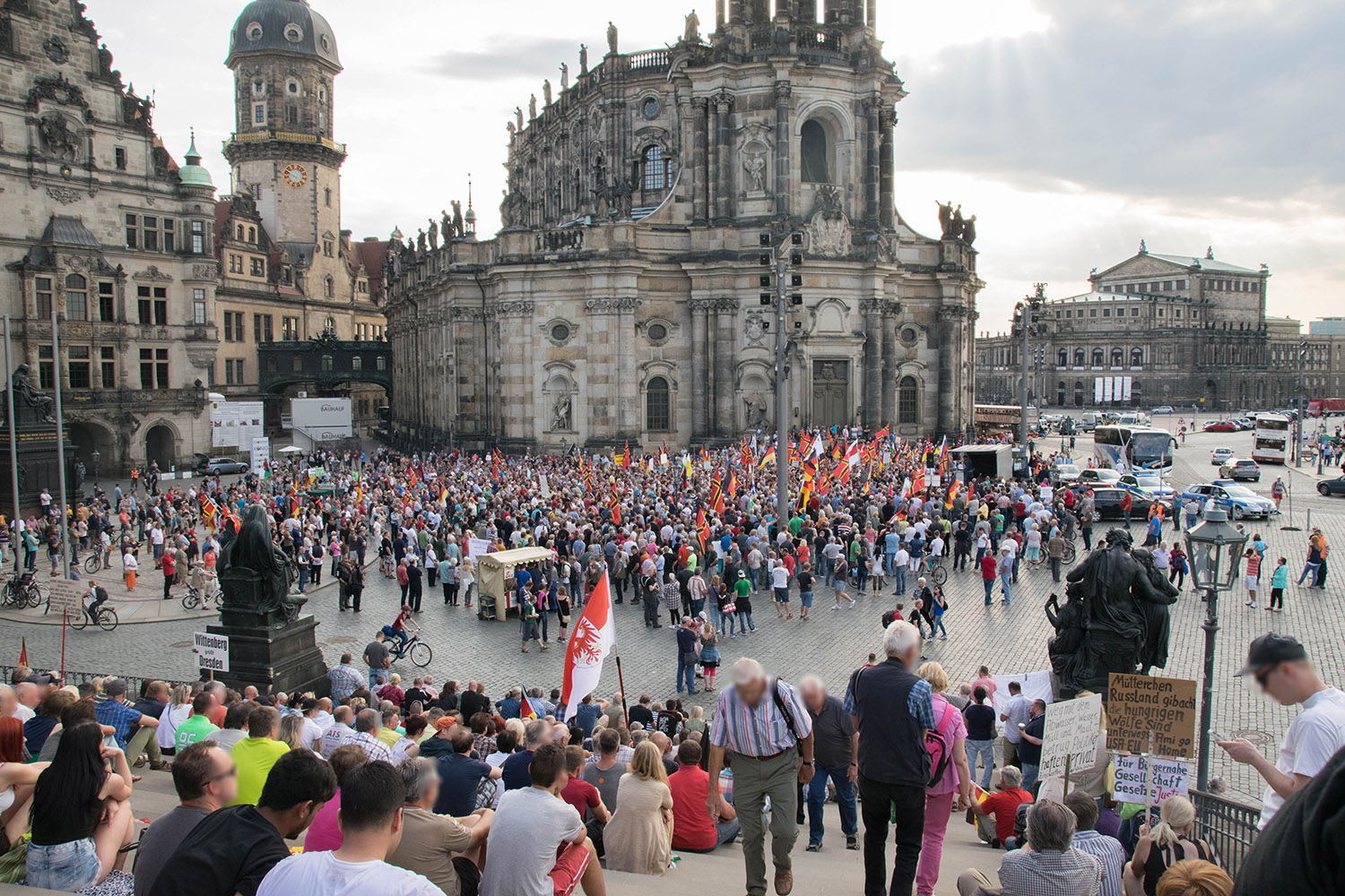 Die Sommerpause ist vorbei. Ab sofort wird wieder jede Woche in Dresden demonstriert. Wir haben auch an diesem Montag die Pegida-Demonstration untersucht, um abzuschätzen, wie viele Menschen sich auf die Straße begeben haben. Nach der Auftaktkundgebung auf dem Neumarkt vor der Frauenkirche zogen die Teilnehmer durch die Stadt.