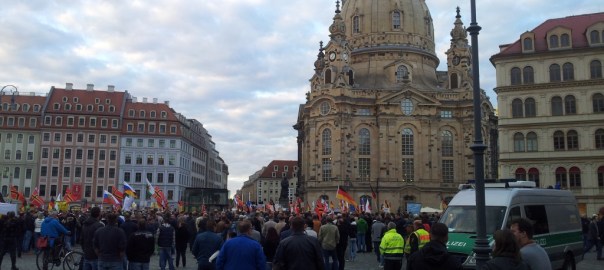 Am 02.11.2015 fand in Dresden eine Demonstration des Pegida-Bündnisses statt. Nach der Auftaktkundgebung zogen die Anhänger mit einem Demonstrationszug durch die Altstadt. Beendet wurde die Veranstaltung nach einer Abschlusskundgebung am Ausgangsort. Dagegen protestierte das Bündnis Gepida (Genervte Einwohner protestieren gegen Intoleranz Dresdner Außenseiter) auf dem Postplatz. Anschließend zog der Gegenprotest in einem Demonstrationszug zum Bahnhof Neustadt. Das Dresdner Team der Forschungsgruppe „Durchgezählt“ war erneut auf der Straße, um mit verschiedenen Methoden die Teilnehmerzahlen möglichst genau abzuschätzen. Analyse der Teilnehmerzahlen zu Pegida und NoPegida am 02.11.2015 in Dresden weiterlesen →