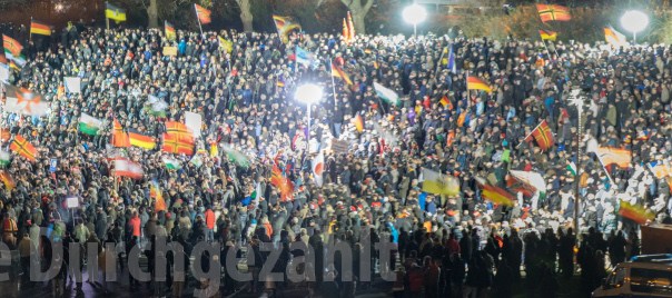 Bei Pegida nahmen mit hoher Sicherheit zwischen 15.000 und 20.000Personen teil. Am Gegenprotest beteiligten sich zwischen 17.500 und 22.000 Menschen unter dem Motto „Herz statt Hetze“.